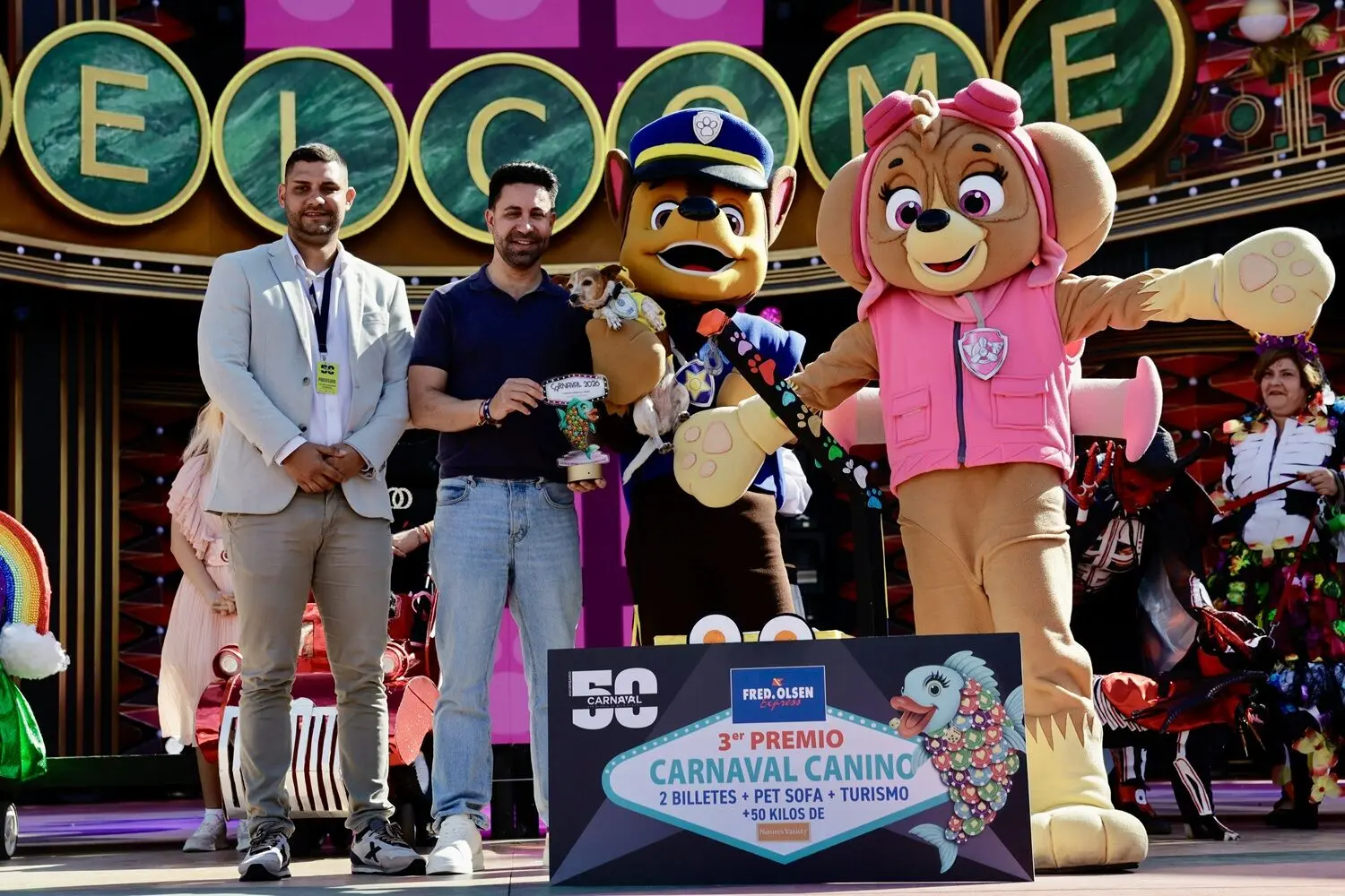 Auch in diesem Jahr moderierte Baby Solano das Hundetreffen, bei dem DJ Toni Bob für die musikalische Untermalung sorgte, während die Teilnehmer über die Bühne liefen. Wie üblich bot der Wettbewerb dem Publikum die Möglichkeit, mit ihren kostümierten Haustieren über die Bühne des Karnevals zu laufen. Dutzende Hunde verschiedener Rassen und Größen taten dies zusammen mit ihren Besitzerinnen und Besitzern und stellten ihre Kreativität unter Beweis, die vom Publikum mit Klatschen bewertet und punktet wurde. Ein sehr unterhaltsamer und besonderer Moment, auf den während der Beratung der Jury ein Auftritt von Kilian Viera folgte.