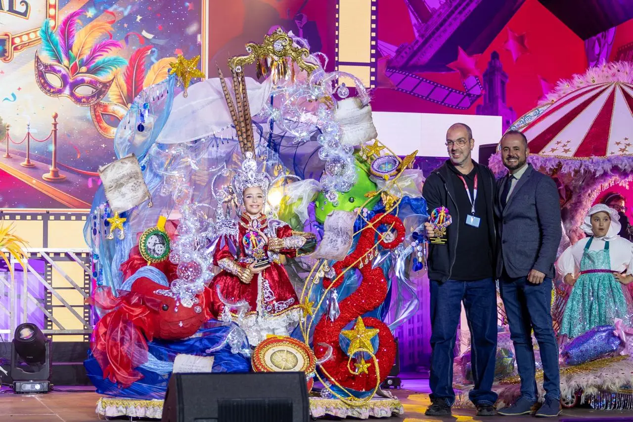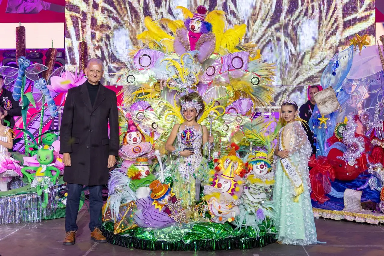 Die Show von Miriam Reyes trug den Titel „Nominiert für die Oscars des Karnevals“, ein thematischer Vorschlag, der von der Welt des Kinos inspiriert war und an dem Kindergruppen und ein Zeremonienmeister teilnahmen, der diesen großen Kinoabend voller Menschen aus der Welt der Kinder moderierte. Der Abend begann mit einer Eröffnungsshow von Alma Show, der Vorstellung der Jury und dem Empfang der scheidenden Kinderkönigin 2025, die mit ihrer Fantasie „Crees en la magia“ (Glaubst du an Magie) auftrat, das von José Luis Delgado García entworfen wurde und Gráficas Printer repräsentierte.