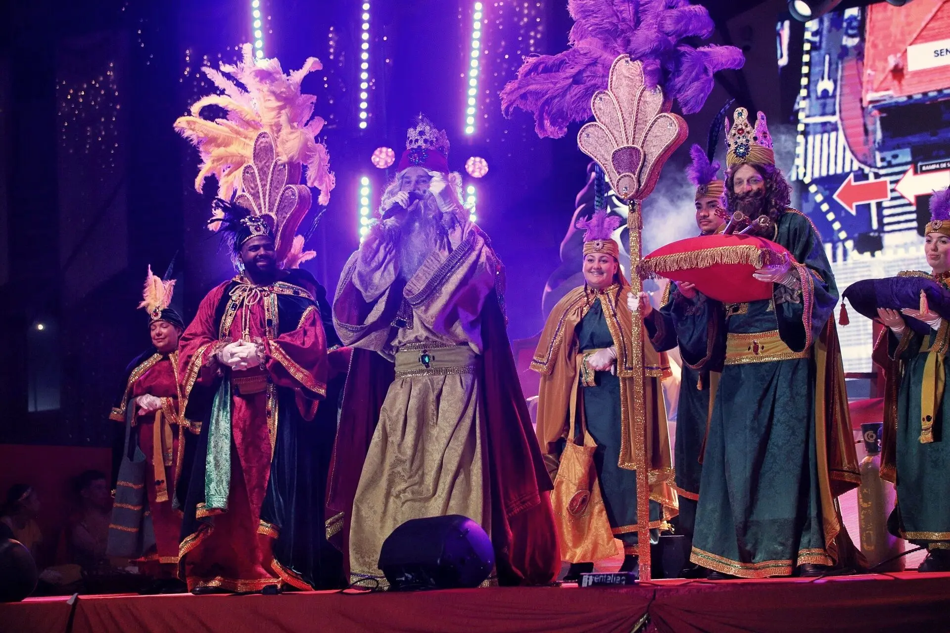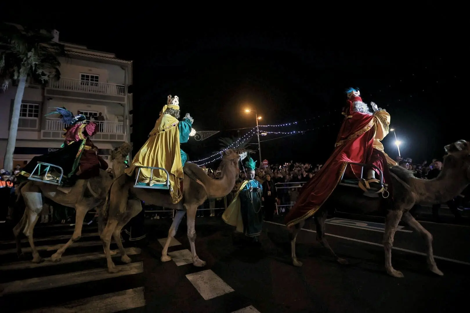 Um 19:00 Uhr trafen die Heiligen Drei Könige aus dem Morgenland ein, begleitet von der gemeinsamen Batucada von Almagec und Tropicana, in einer Atmosphäre voller Emotionen und Freude. Melchior, Gaspar und Balthasar wurden im Portal des Rathauses empfangen, wo ihnen die Bürgermeisterin von Candelaria, Mari Brito, den magischen Schlüssel der Gemeinde überreichte, der ihnen in dieser besonderen Nacht des Jahres Zugang zu allen Häusern gewährt. Anschließend begrüßten Ihre Majestäten die Kinder, die ihnen ihre letzten Briefe geben konnten.