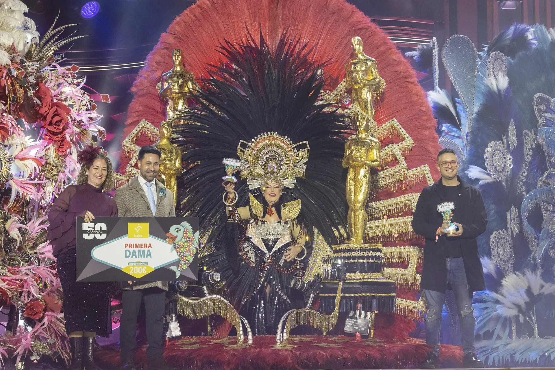 Die Schauspielerin Lili Quintana, die die Rolle der Führerin übernahm, hieß sie zu 50 Jahren Karneval willkommen, zusammen mit den Gewinnern des Kostümwettbewerbs Amanecer Rociero, den Karnevalsfiguren, der Blaskapelle Los Nietos de Kika und Pepe Benavente, der die Karnevalshymne sang, begleitet von der Karnevalsgruppe Aragūimé. Sie sorgten zu Beginn der Gala für Rhythmus und Farbe.