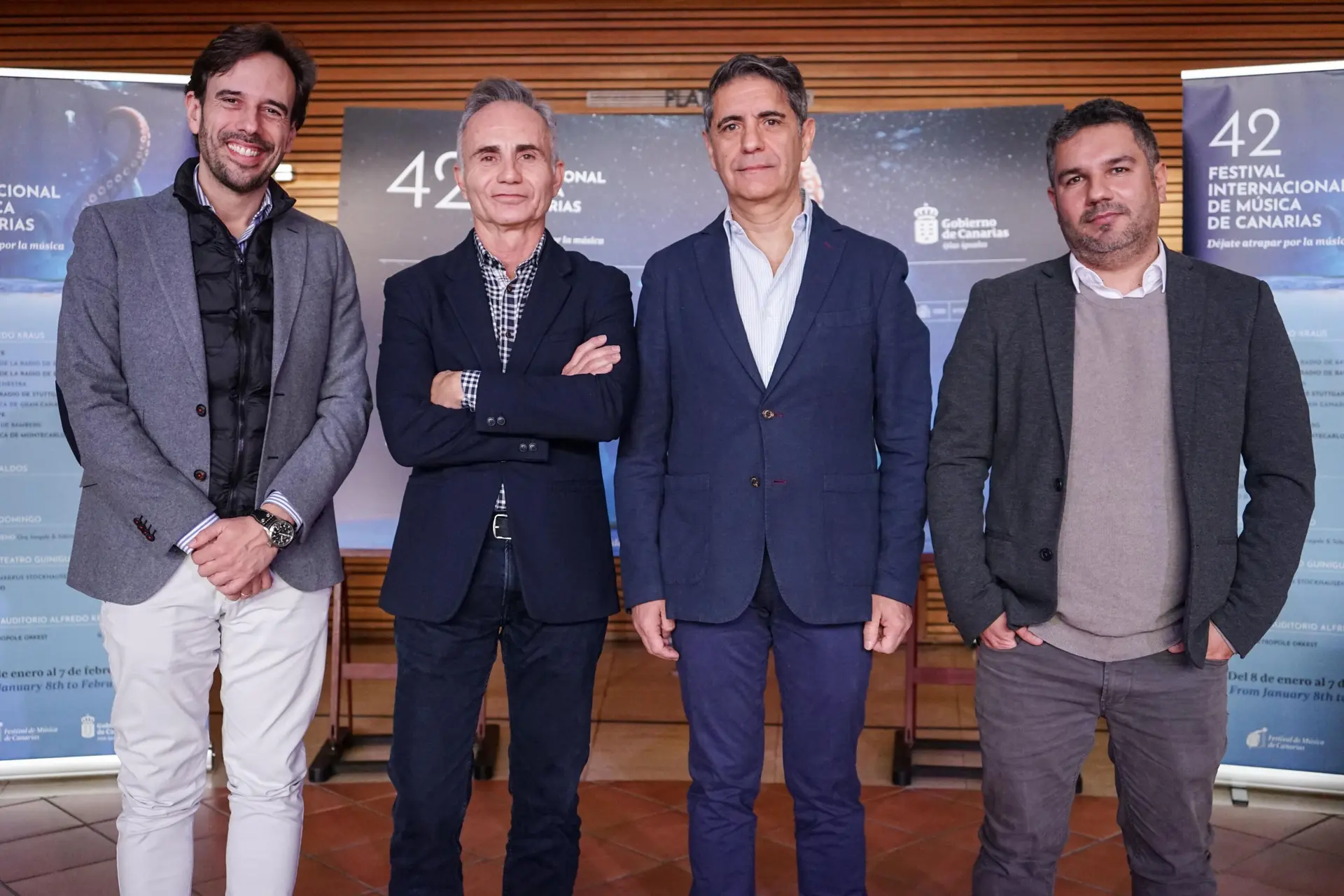 Diese Konzerte sowie weitere, die noch in dieser Woche auf den Inseln stattfinden werden, wurden vom Inselrat für Kultur der Regierung der Kanarischen Inseln, Horacio Umpiérrez, in einer Veranstaltung vorgestellt, bei der er vom Geschäftsführer des Orchesters und Chors von RTVE, Manuel Ventero, dem kanarischen Pianisten Iván Martín, der als Solist eines der bekanntesten Stücke von Falla interpretieren wird, und dem Koordinator des FIMC, Samuel Ramos, begleitet wurde.