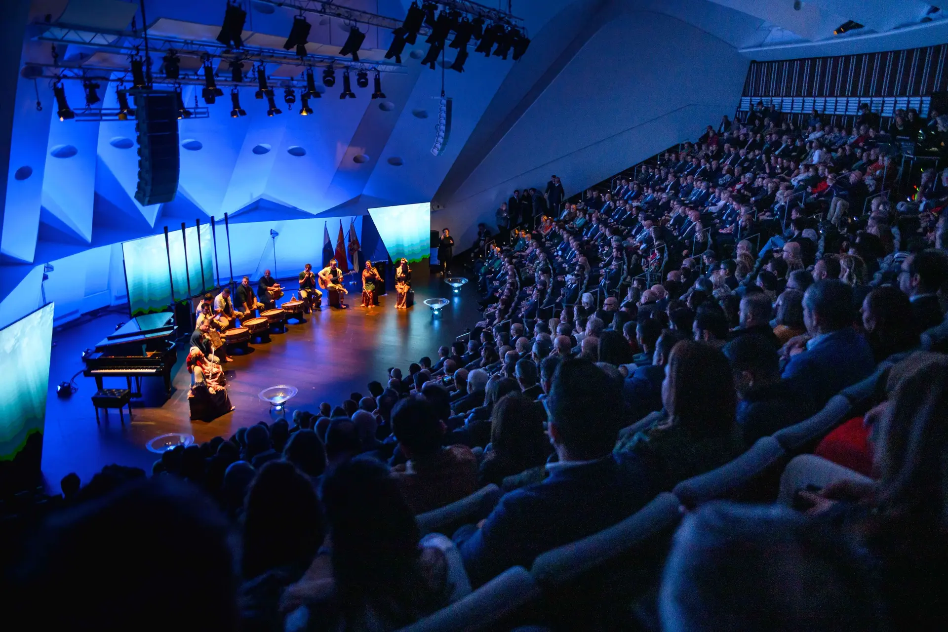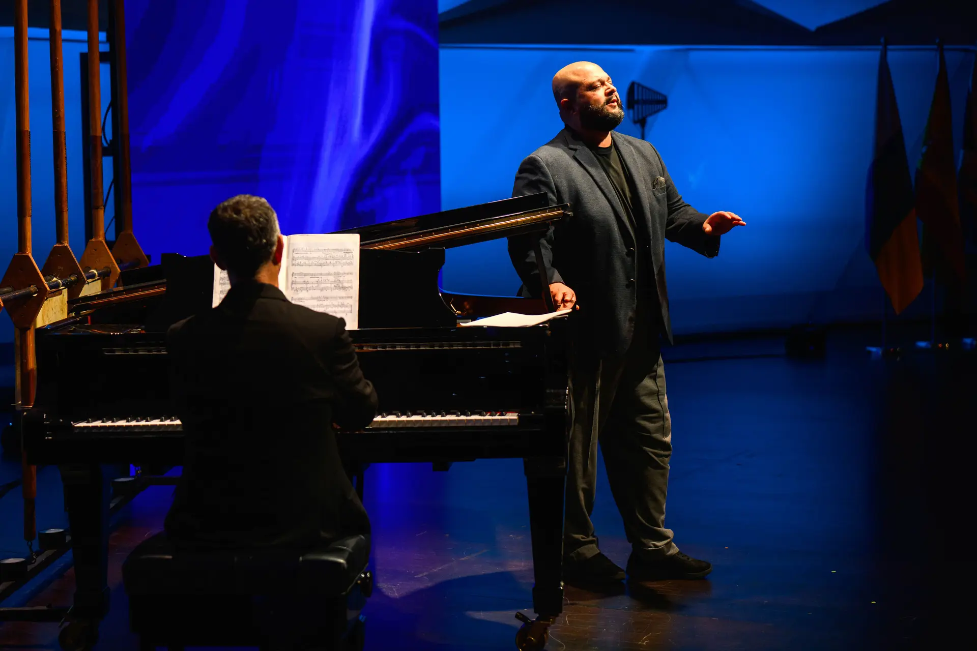 Die Anwesenden genossen die Stimme des Tenors Celso Albelo aus Teneriffa, der eine emotionale Darbietung mit Klavierbegleitung bot und erklärte: „Heute Abend repräsentiere ich nicht nur eine Karriere, sondern ich denke gern, dass ich ein gemeinsames Gefühl repräsentiere, nämlich das Gefühl, zu diesem wunderbaren Land zu gehören“.