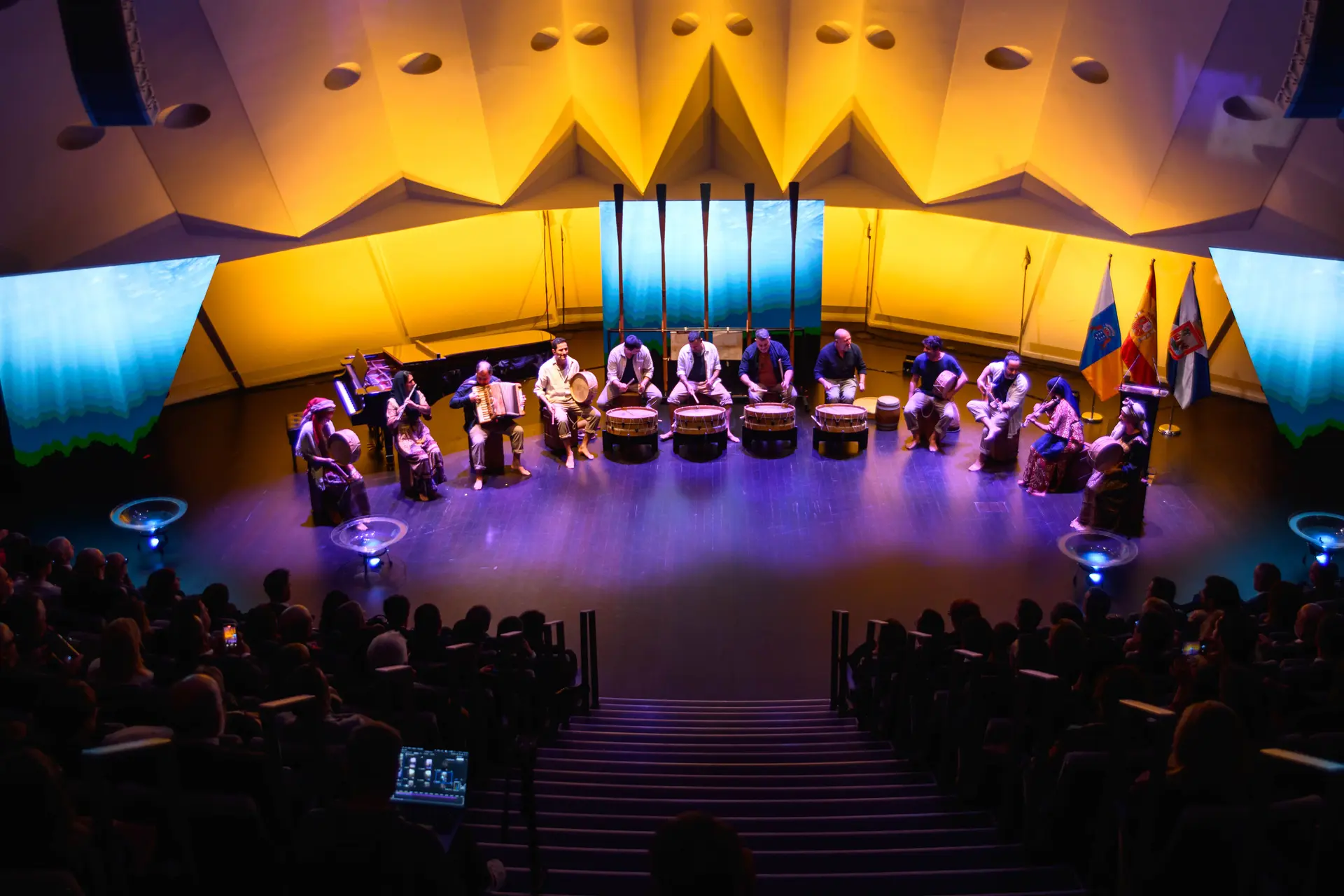 Im Rahmen dieser institutionellen Veranstaltung gab es auch Gelegenheit, verschiedene musikalische Darbietungen zu genießen. Die kanarische Kompanie Pieles führte ein vom Meer inspiriertes Stück auf, das an die Ursprünge, die Kultur und die tiefe Verbundenheit der Insel mit ihrem Territorium erinnerte.