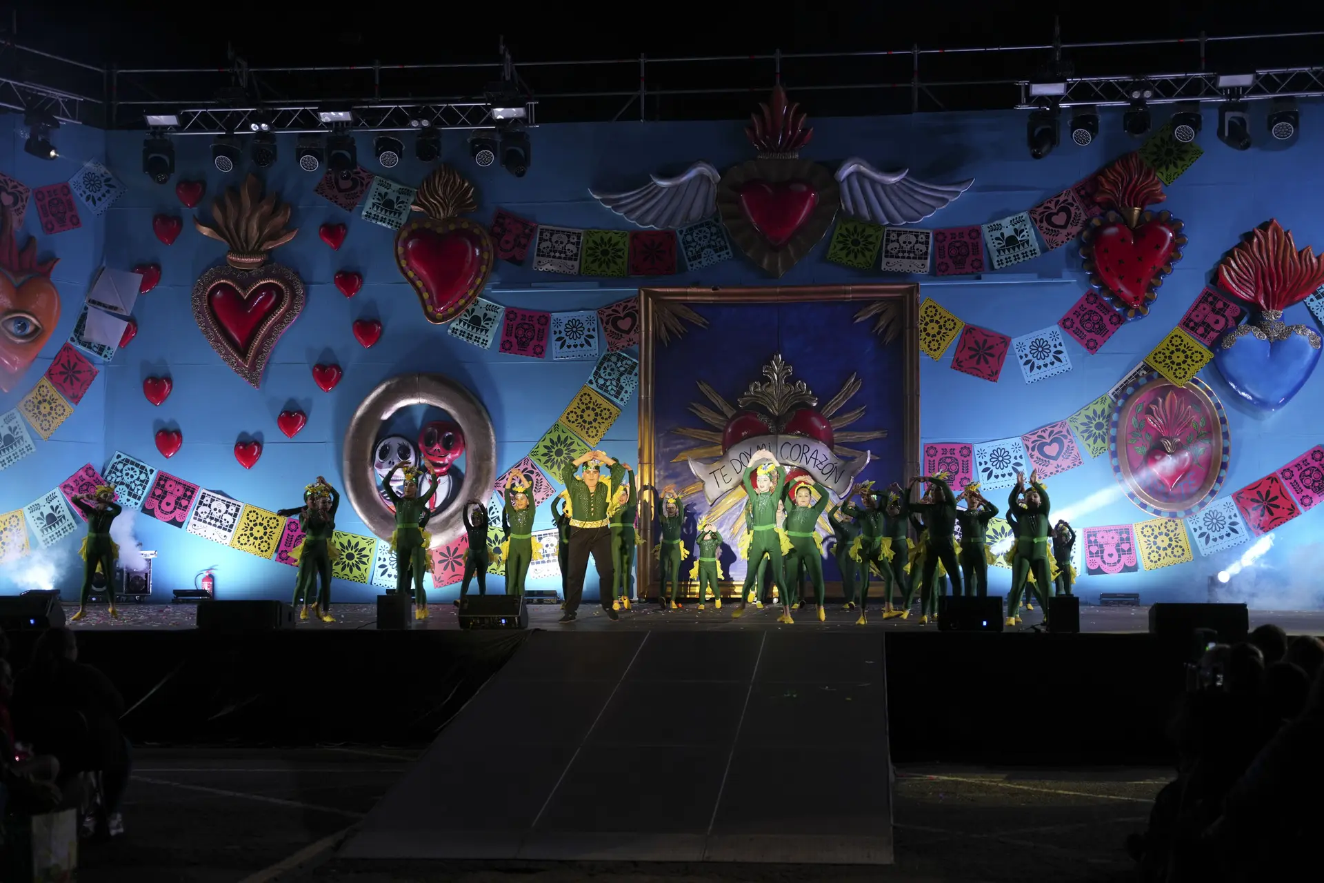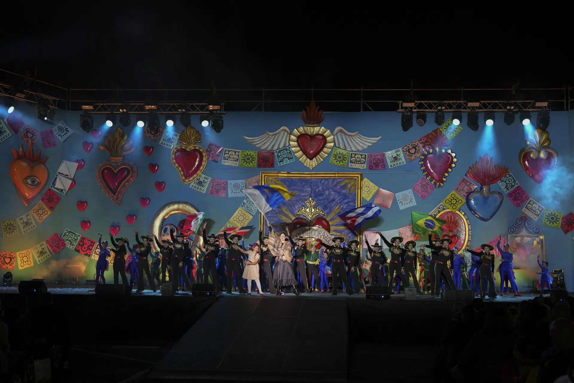 Die Show begann mit der zarten und emotionalen Inszenierung des Balletts Bewild, begleitet von Briana Cabo, Trono Infantil 2025. Anschließend sorgten mehr als 100 junge Künstler und Tänzer der Gruppe Wonder für eine spektakuläre Eröffnung, die Klänge, Tänze und Referenzen aus dem mexikanischen Kino mit urbanen Rhythmen verband und das Publikum überraschte. Die Energie hielt mit dem Auftritt der 13-köpfigen Comparsa Carabao Wayana Infantil an, die die Fantasie „Todo al rojo en París“ (Alles auf Rot in Paris) präsentierte und die Bühne mit Rhythmus, Farbe und Begeisterung füllte.