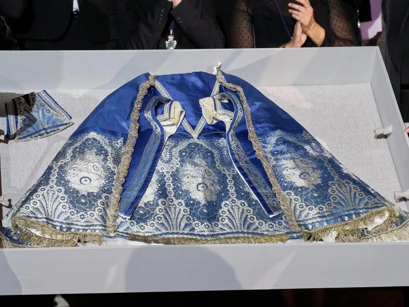 Im Rahmen des institutionellen Empfangs überreichte die Stadtverwaltung von Los Llanos de Aridane der Schutzheiligen von La Palma ein neues Kleid aus Originalseide aus dem 19. Jahrhundert. Das von den Kunsthandwerkerinnen Pilar Hernández González und Ana Isabel Martín Sánchez gefertigte Kleid kombiniert die für die Jungfrau emblematischen Farben Ceruleanblau und Kobaltblau mit Weiß, das an Schnee und Reinheit erinnert.