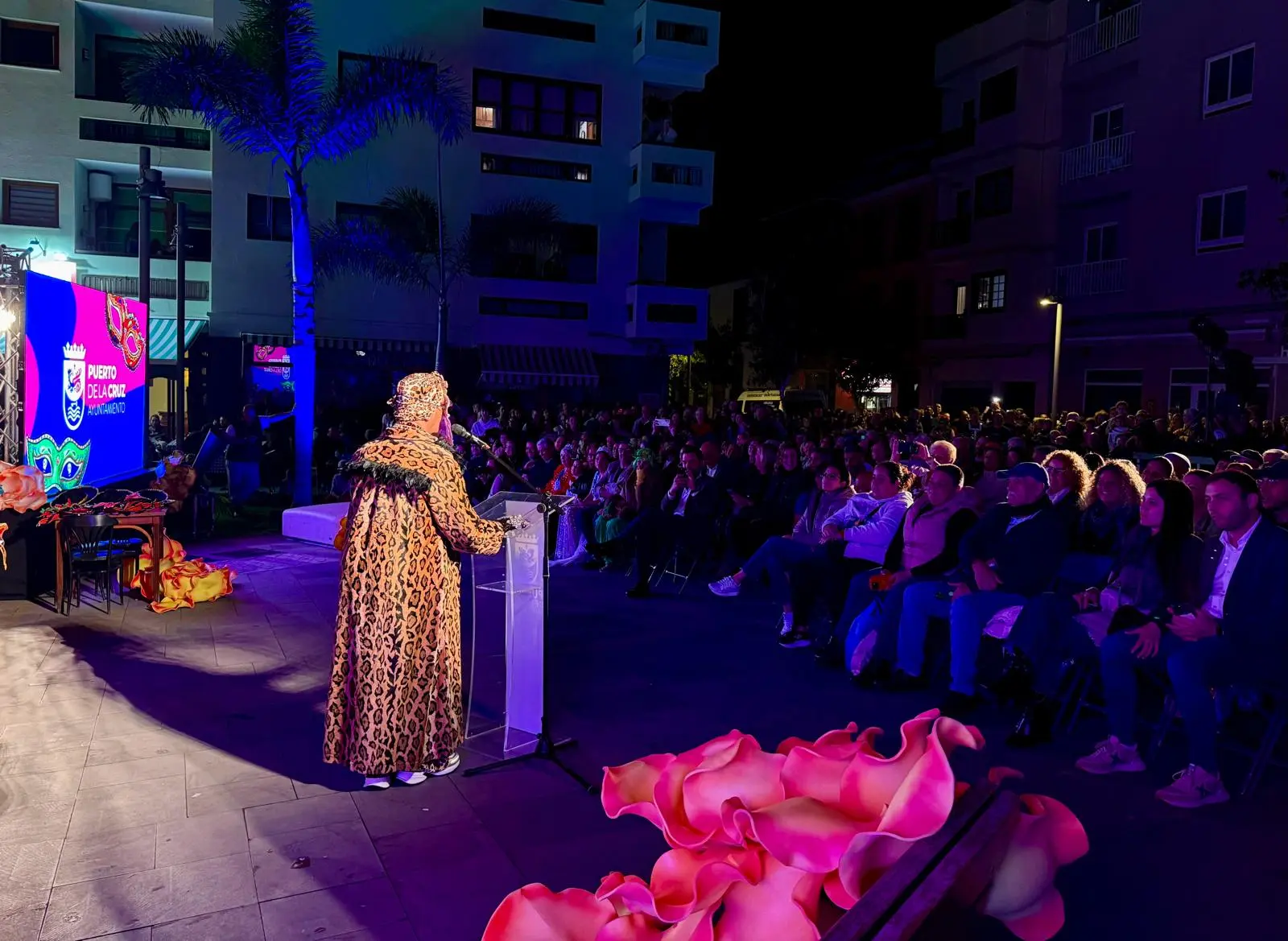 Die Gala wurde von den Moderatoren Reme Dévora und Alberto Castilla aus Puerto de la Cruz geleitet, die mit Professionalität und Sympathie die Veranstaltung brillant moderierten und die Einwohner und Besucher dazu animierten, den Karneval wie echte Einwohner von Puerto de la Cruz zu erleben, wobei sie dessen sicheren, familiären und partizipativen Charakter hervorhoben.