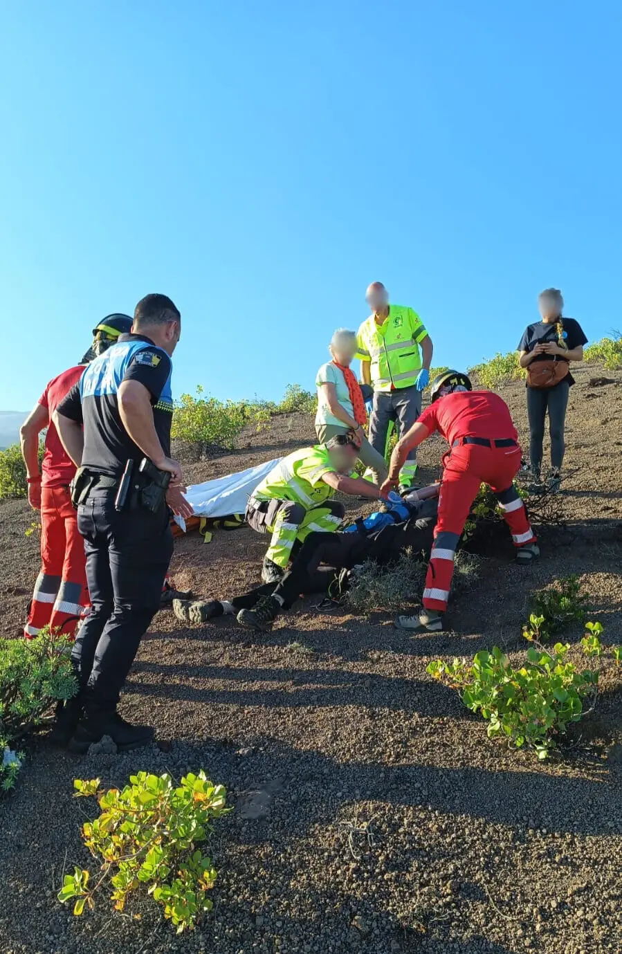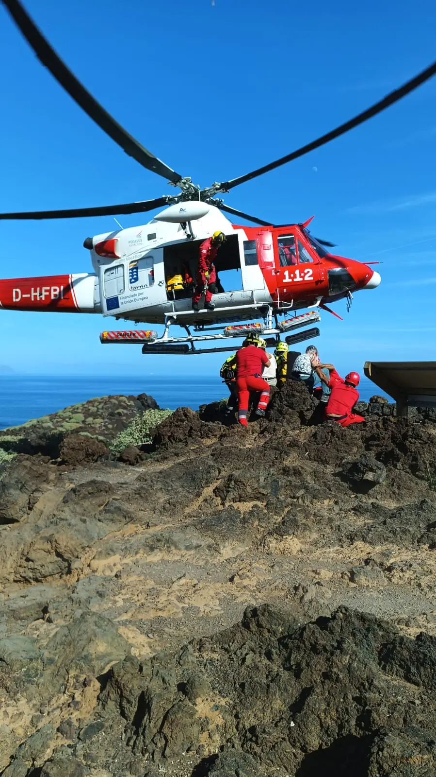 Um 13:40 Uhr wurden Einsatzkräfte der Feuerwehr in Güímar gerufen, um zwei Wanderer zu retten, die auf dem Wanderweg Malpaís de Güímar nicht weitergehen konnten. Als sie bei ihnen ankamen, führten sie eine klinische Untersuchung durch und informierten den Arzt des Notdienstes 112, der die Evakuierung mit dem Hubschrauber des GES anordnete. Sie halfen dabei, beide in das Luftfahrzeug zu bringen.
