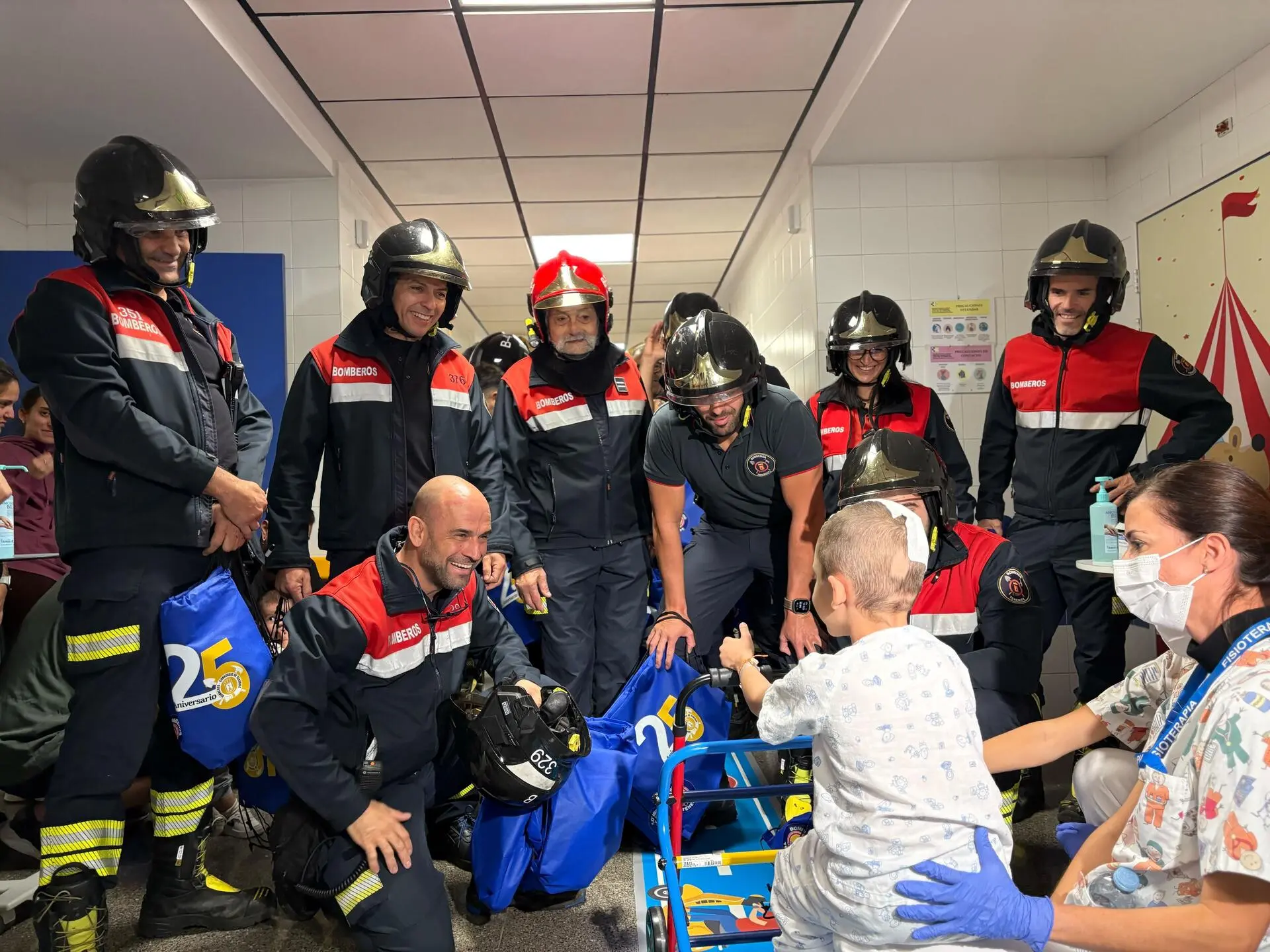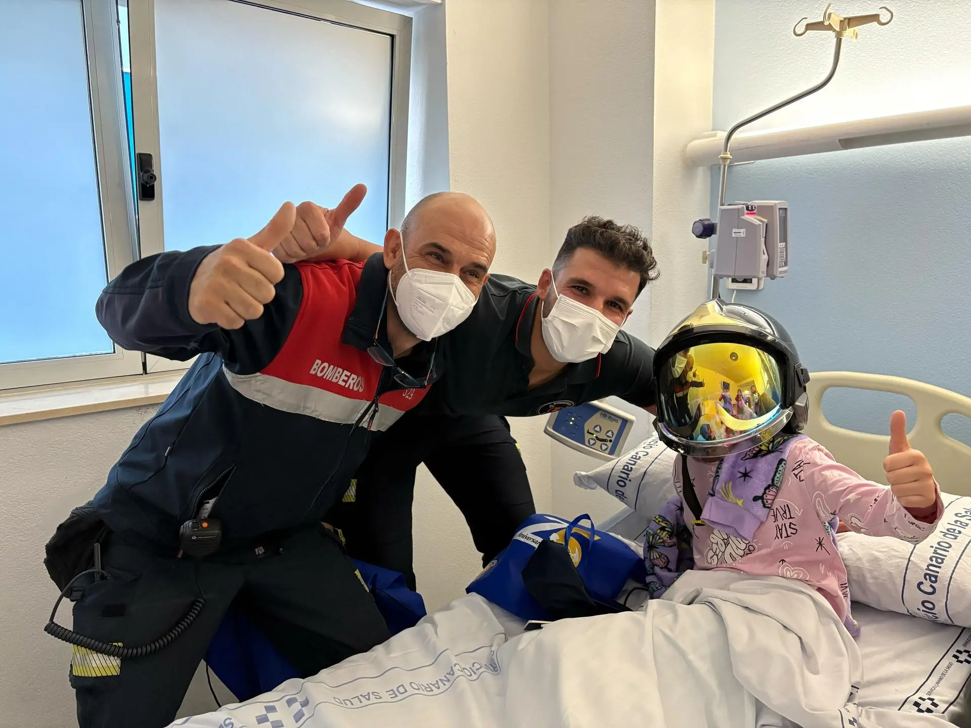 Feuerwehrleute aus Teneriffa verbreiten Hoffnung auf der Kinderstation des Krankenhauses La Candelaria