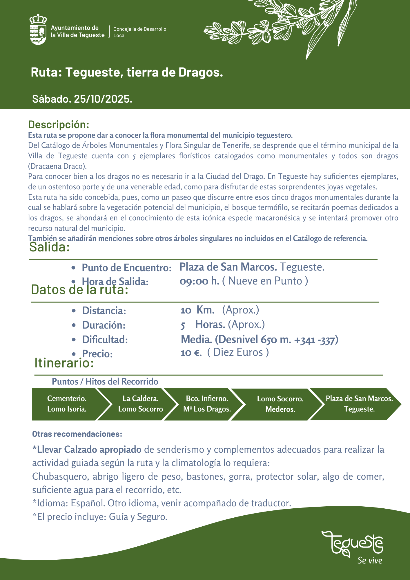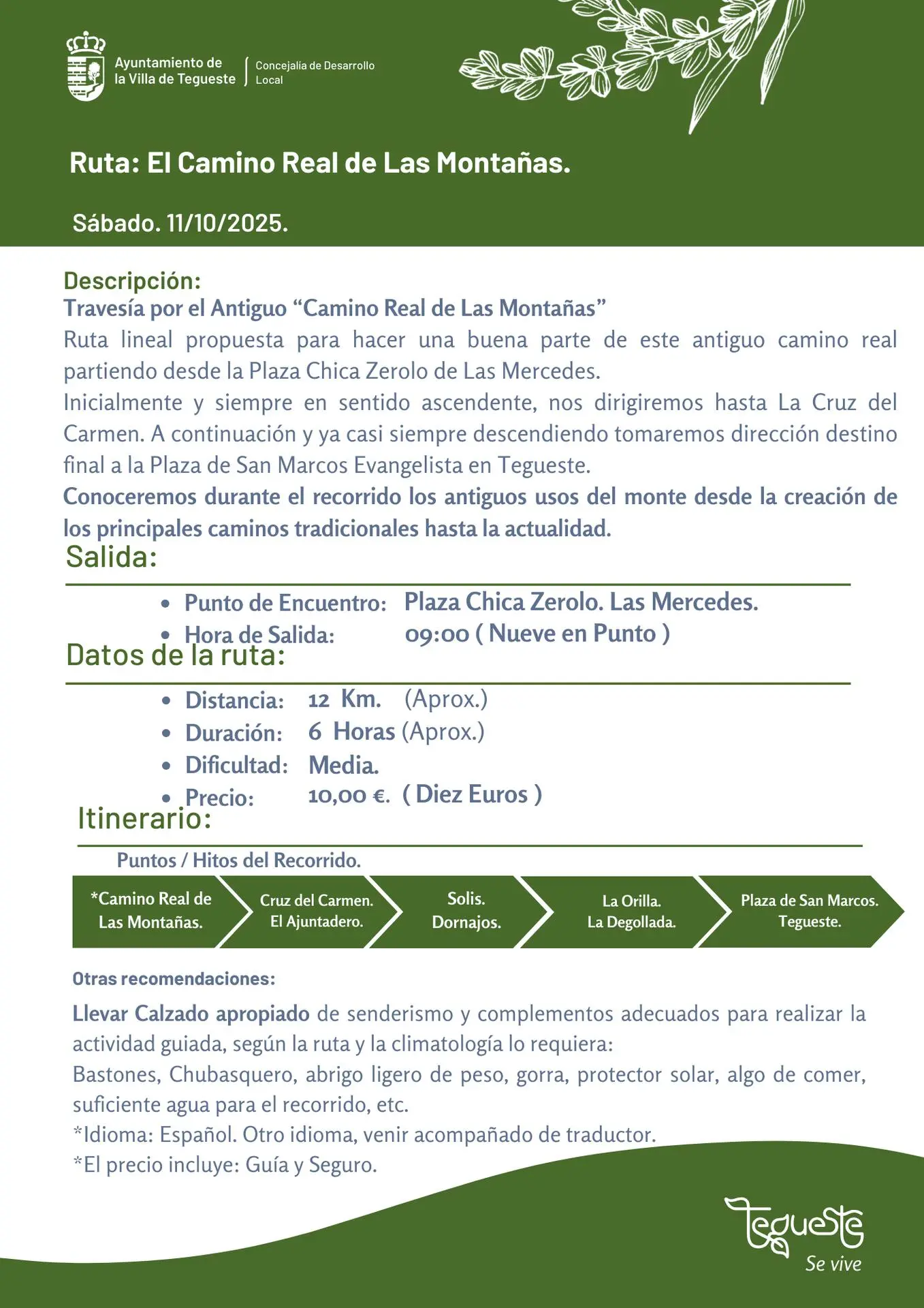 Es wird daran erinnert, dass die Voranmeldung freitags mit einer Frist von 15 Tagen möglich ist. Das Tourismusbüro Tegueste beginnt mit der Vorregistrierung für jede Route.