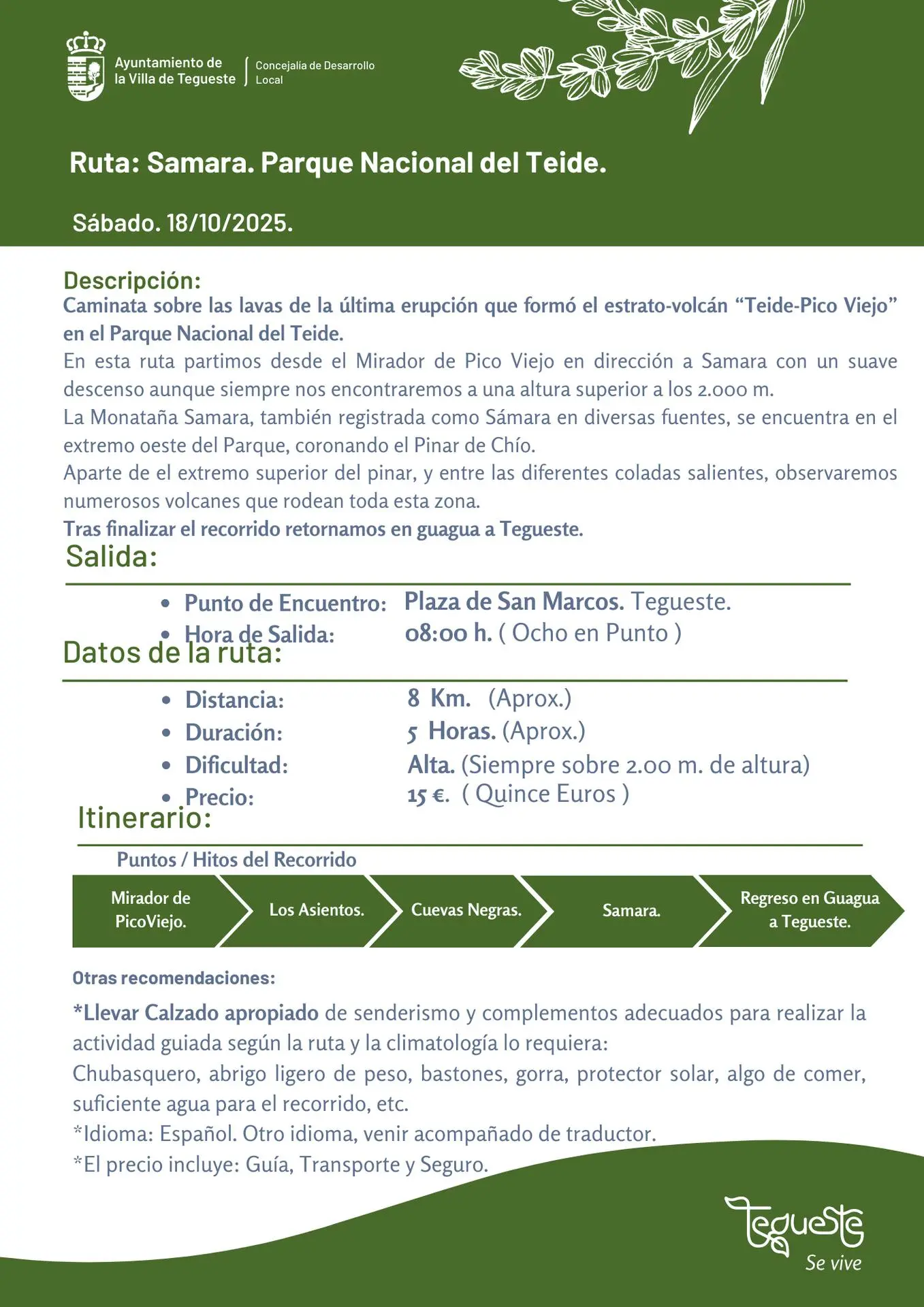 Samstag, 18.10.2025: Route „Samara. Parque Nacional del Teide“ (Samara. Nationalpark Teide)