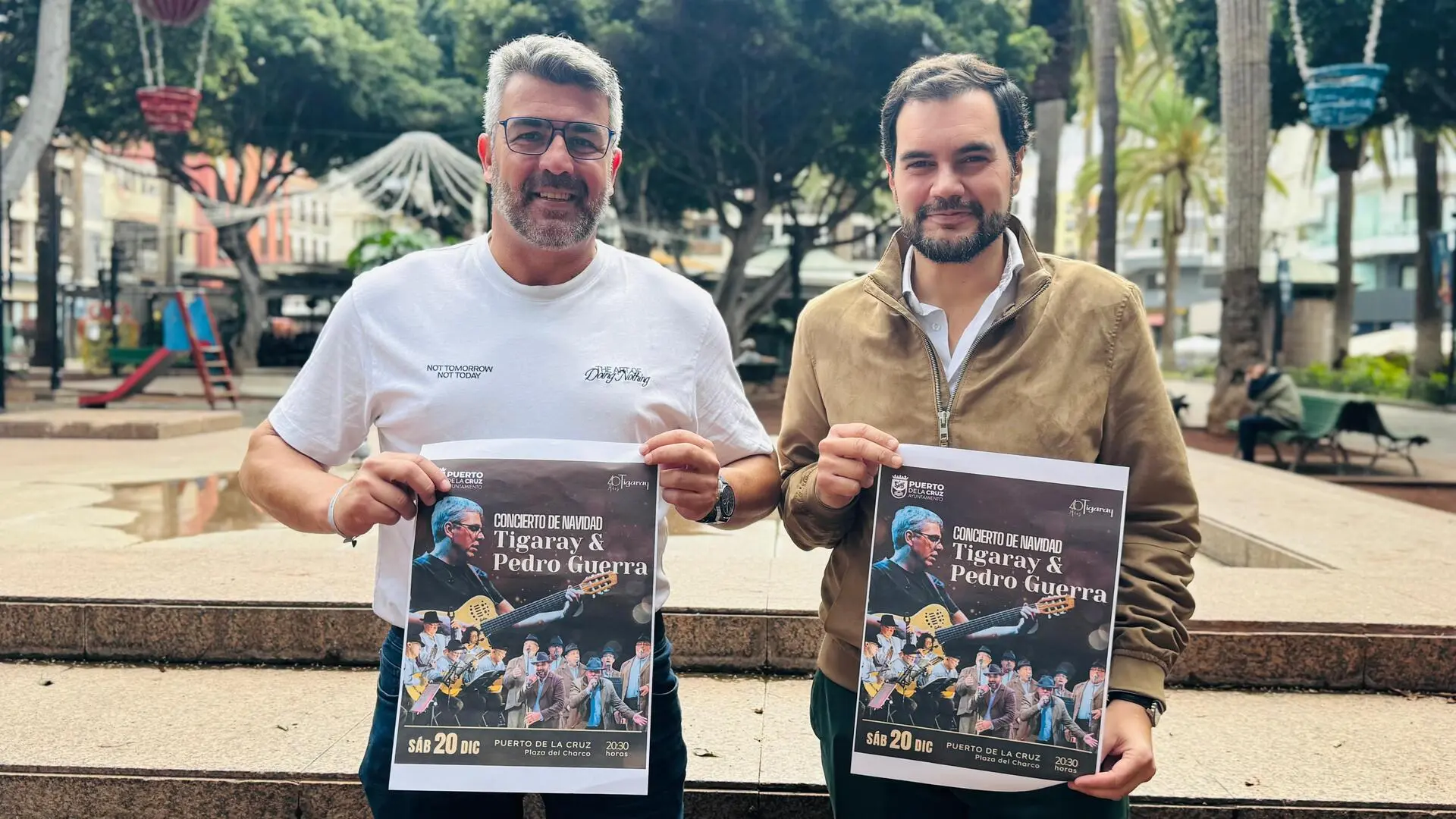 Puerto de la Cruz, 18. Dezember 2025. – An diesem Samstag, dem 20. Dezember, um 20:30 Uhr, veranstaltet die Stadtverwaltung von Puerto de la Cruz über die Abteilung für Festlichkeiten ein besonderes Weihnachtskonzert auf der Plaza del Charco, bei dem die emblematische Gruppe Tigaray und der bekannte Liedermacher Pedro Guerra auftreten.