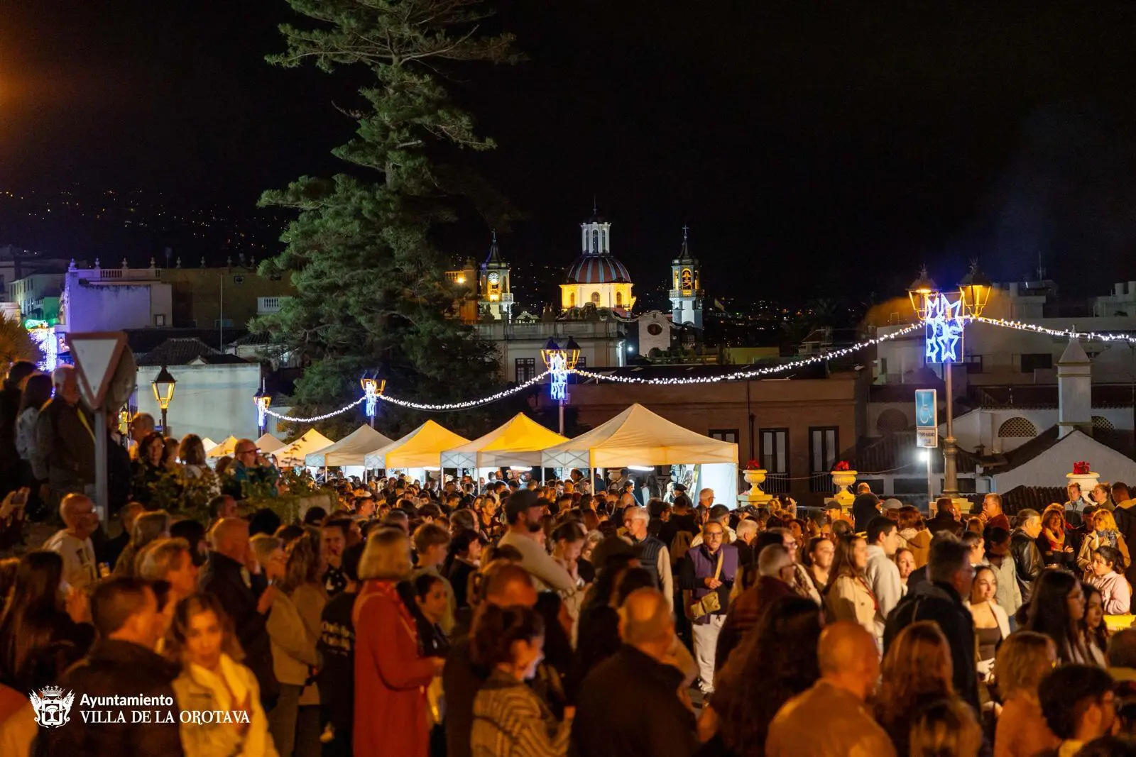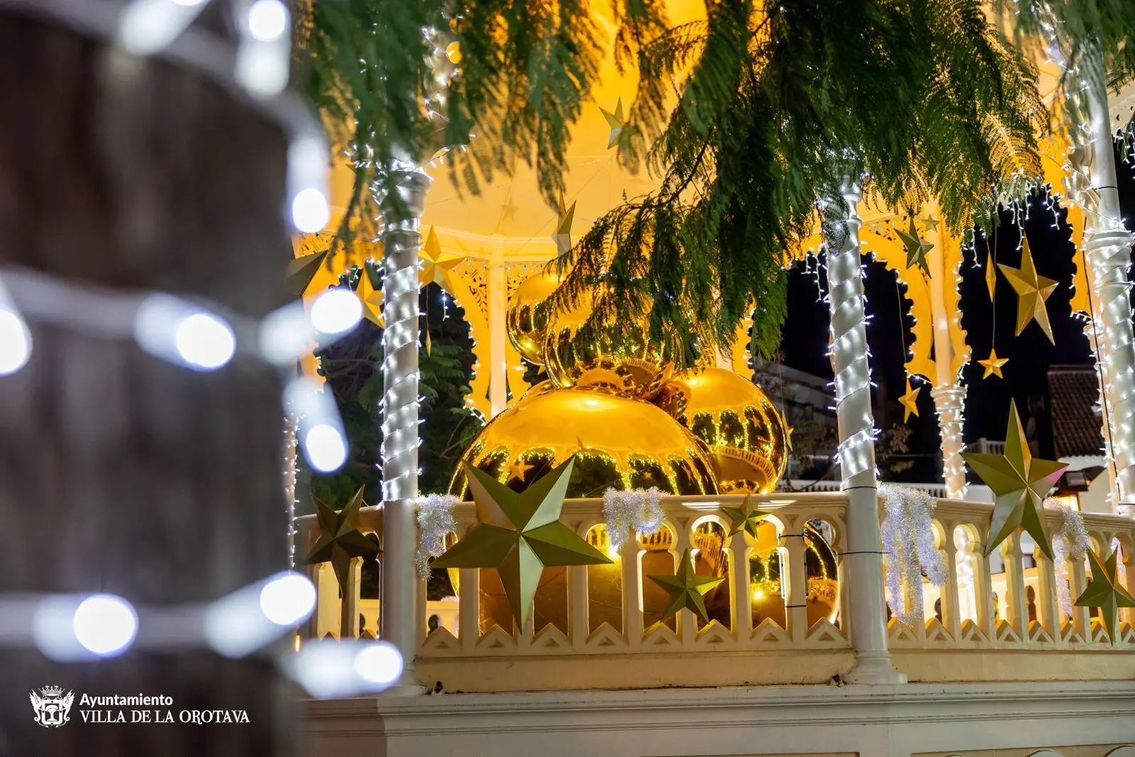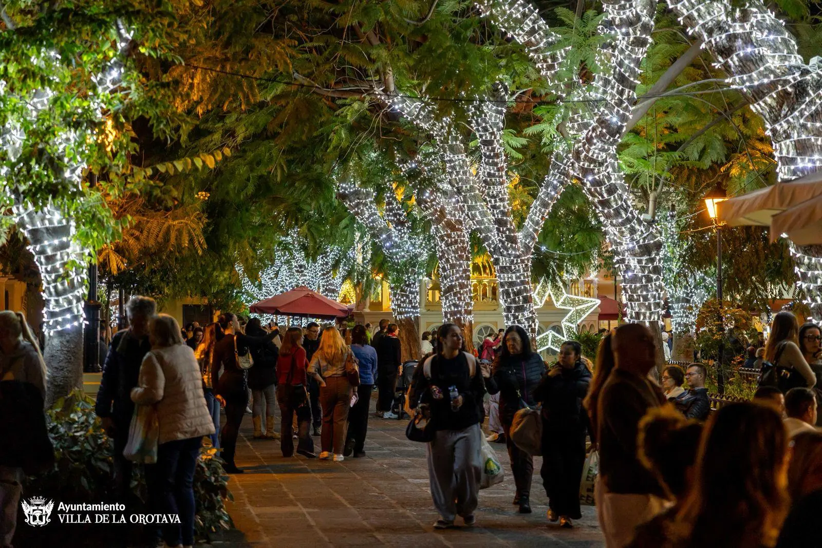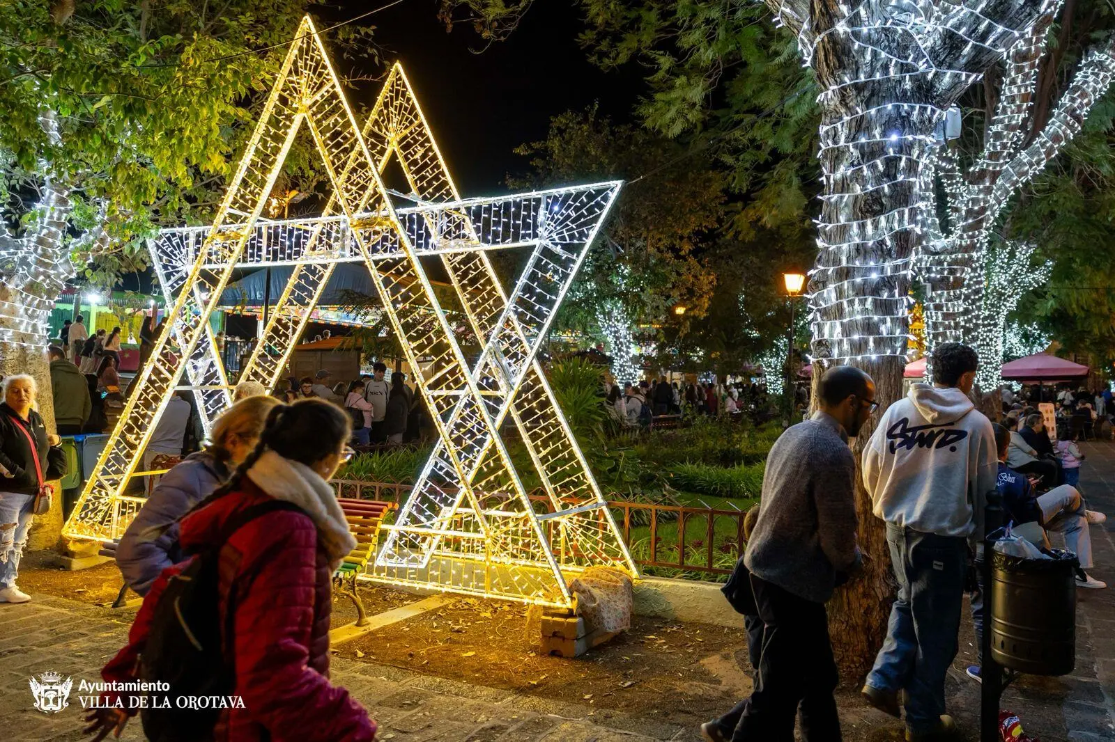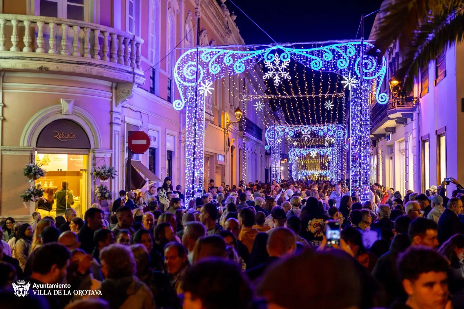 Auf dem Rathausplatz fand eine großartige Show unter dem Titel „A toda máquina! Rumbo a la Navidad“ (Volle Kraft voraus! Auf zu Weihnachten) statt. Nach dieser Inszenierung drückte Bürgermeister Francisco Linares auf den Knopf, um die spektakuläre ornamentale Beleuchtung des Zentrums von La Orotava einzuschalten. Mehr als 5.000 Meter Rosenkranz, 7.000 Meter Girlanden, 800 Meter Vorhänge, etwa 200 weihnachtliche Motive und Arkaden sowie zwei große Fotokugeln auf der Plaza de la Constitución. Die gesamte Beleuchtung, die jeden Tag um Mitternacht ausgeschaltet wird, ist energiesparend. Die Straße Carrera Escultor Estévez lädt im Abschnitt zwischen der Brücke und dem Rathaus mit ihren Arkaden und dem Lichtvorhang zum Flanieren ein und trägt zur Atmosphäre des Viertels bei.