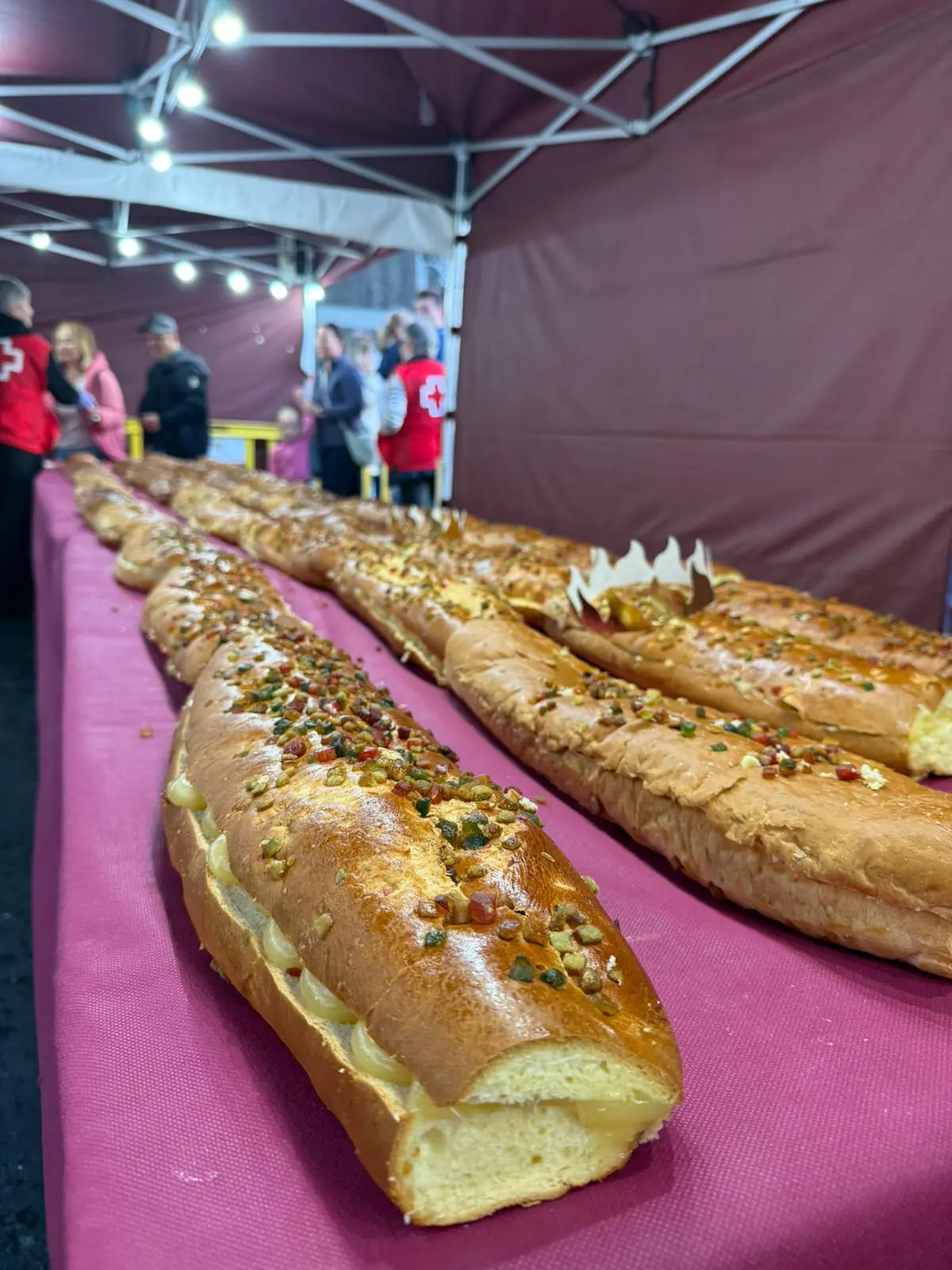 La Orotava, 5. Januar 2026. – Ein weiteres Mal war es ein großer Erfolg, eine der kulinarischsten und mit Spannung erwarteten Veranstaltungen des umfangreichen Weihnachtsprogramms in La Orotava, der große Dreikönigskuchen (Roscón de Reyes), einer der größten auf Teneriffa und den Kanarischen Inseln. Bei dieser vierzehnten Auflage wurden mehr als 5000 Portionen des Riesenkuchens verteilt, der von zwei lokalen Unternehmen hergestellt wurde: der Bäckerei Jovita und der Konditorei La Manobuena. Die Verteilung begann um 17:00 Uhr und endete gegen 21:00 Uhr.