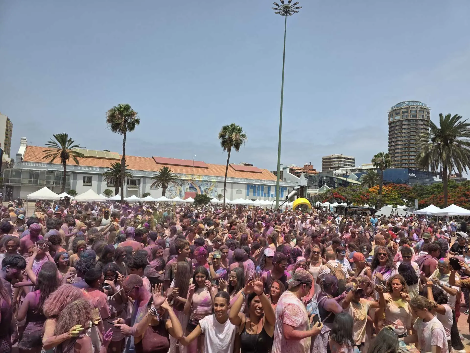 Las Palmas de Gran Canaria, 29. Juni 2025 – Mehr als 3.000 Menschen nahmen an diesem Sonntag am „Holi Fest“ auf der Plaza de Canarias teil. Das Festival, organisiert von der Stadtverwaltung von Las Palmas de Gran Canaria über die Bezirksverwaltung Isleta-Puerto-Guanarteme und in Zusammenarbeit mit dem Unternehmerverband Santa Catalina, füllte den hinteren Teil des Santa Catalina Parks mit Farben, Musik und Kultur.