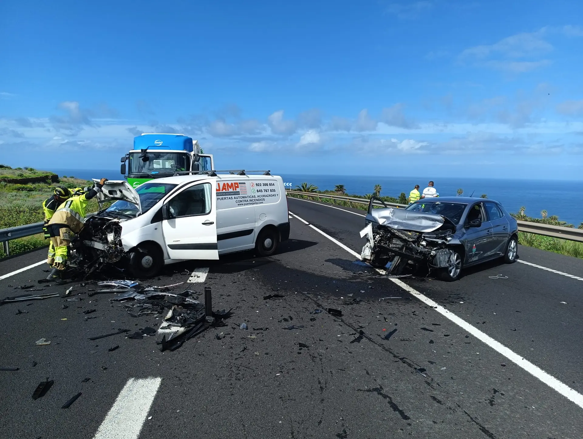 Einsatzkräfte mit Sitz in Guía de Isora wurden am Sonntag gegen 10:00 Uhr alarmiert, nachdem es zu einem Zusammenstoß zwischen zwei Fahrzeugen gekommen war, die auf der Zufahrtsstraße nach Vera de Erques in der Gemeinde Guía unterwegs waren. Als sie am Unfallort eintrafen, stellten sie fest, dass zwei Personen eingeklemmt waren, woraufhin sie diese befreiten und in den Krankenwagen des kanarischen Rettungsdienstes (SUC) brachten. Auch freiwillige Feuerwehrleute aus Guía sowie Beamte der Guardia Civil und der örtlichen Polizei waren an der Rettungsaktion beteiligt.