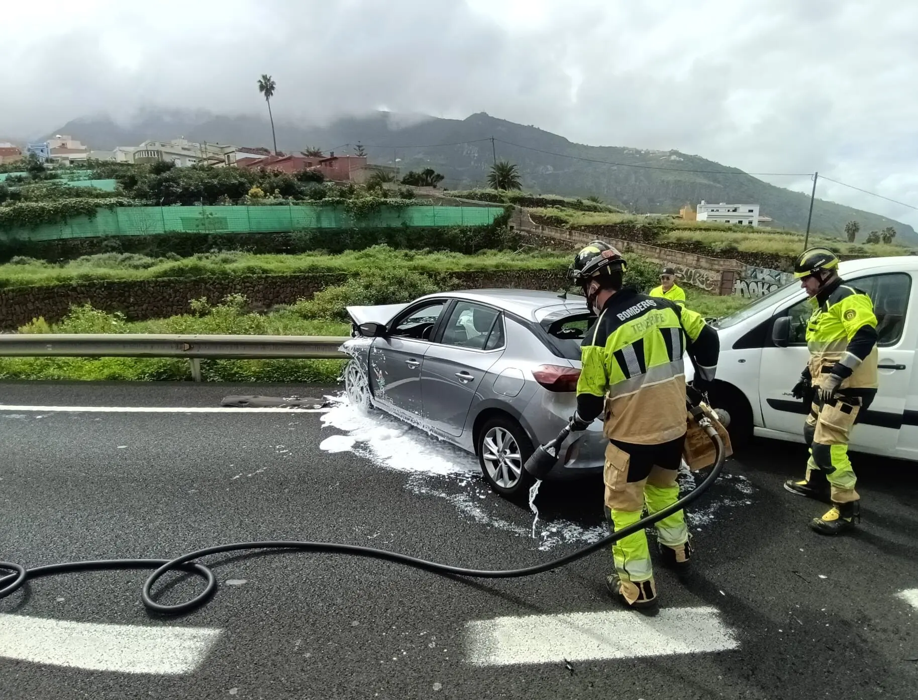 In Los Realejos erforderte ein Frontalzusammenstoß zwischen zwei Fahrzeugen am Freitag den Einsatz der Feuerwehr von La Orotava. Am Unfallort angekommen, leisteten sie den Betroffenen Hilfe, koppelten die Batterien ab und kontrollierten, ob Flüssigkeiten ausgetreten waren. Außerdem schoben sie die Fahrzeuge nach Genehmigung durch die Guardia Civil an den Straßenrand.