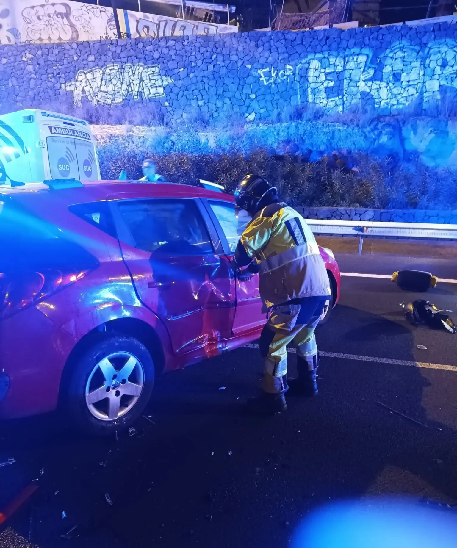 Die Feuerwehr von Teneriffa mit Sitz in Santa Cruz wurde am Samstag gegen 02:00 Uhr zu einem Verkehrsunfall zwischen zwei Fahrzeugen und einem Motorrad auf der TF-5 gerufen. Am Unfallort angekommen, halfen sie dem Rettungsdienst SUC bei der Bergung des Motorradfahrers, sicherten den Bereich, koppelten die Batterien der Autos ab und räumten die Trümmer von der Straße, um den Verkehr auf Wunsch der Guardia Civil wieder freigeben zu können.