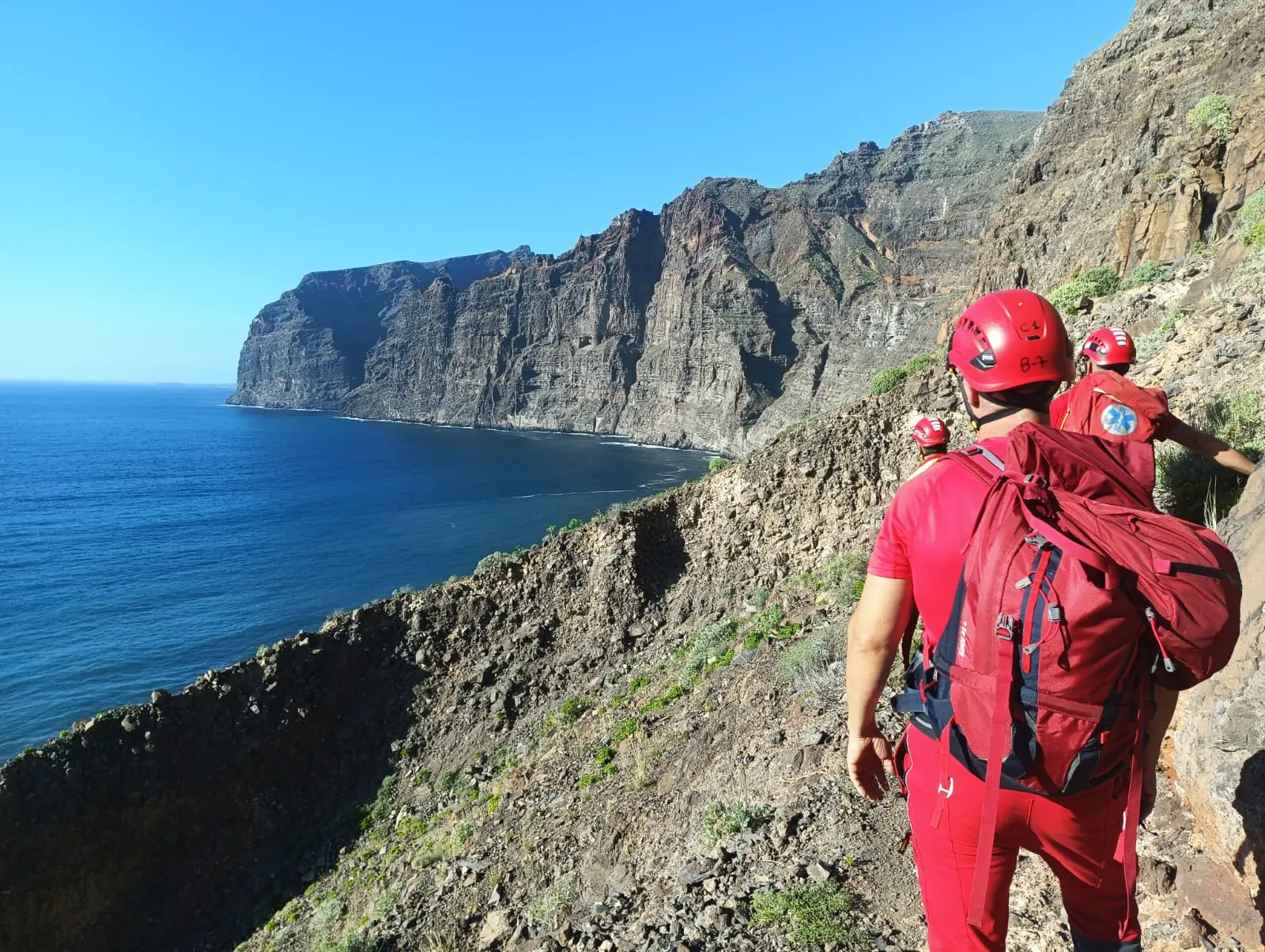 Von der Feuerwehrwache in Santa Cruz rückte eine vierköpfige Mannschaft zusammen mit einem Drohnenpiloten und einem Feuerwehrmann als Beobachter aus, um eine Suchaktion sowohl von Chamorga als auch von Benijo aus durchzuführen. Den ganzen Nachmittag über durchkämmten die Einsatzkräfte alle möglichen Routen und Wege, während die Koordinatoren die Routen aufzeichneten, die zu durchsuchenden Gebiete organisierten und die Maßnahmen zusammen mit dem Wachchef und dem Einsatzleiter koordinierten.
