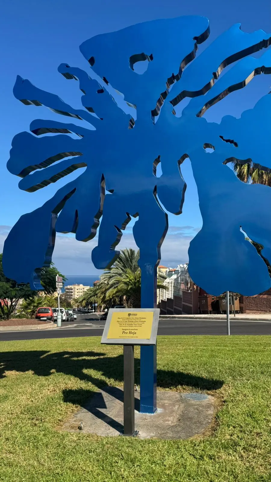 Die Skulptur Pez Hoja aus blau patiniertem Cortenstahl ist fünf Meter hoch und stellt eine Hommage an die Seefahrt und die natürliche Verbindung von Puerto de la Cruz mit dem Meer dar. Inspiriert von der Verschmelzung zwischen der Meereswelt und der Küstenvegetation, symbolisiert das Werk die Harmonie zwischen Kunst, Natur und lokaler Identität.