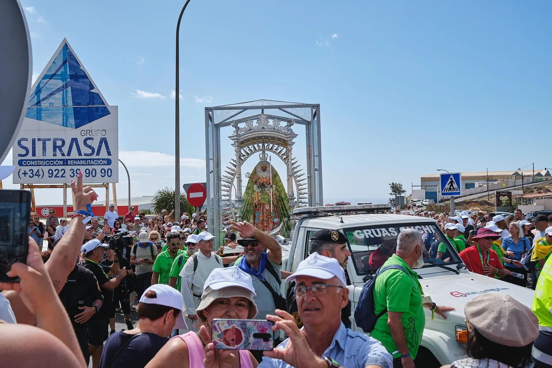 Diese Überführung, die alle sieben Jahre stattfindet, ist der sechste Besuch der Schutzpatronin der Kanarischen Inseln in Santa Cruz, nach den Jahren 1939, 1964-1965, 1994, 2002 und 2018. Bei dieser Gelegenheit trug die Jungfrau beim Verlassen der Basilika den Kommandostab des Cabildo von Teneriffa, der ihr einige Tage zuvor von der Präsidentin der Insel, Rosa Dávila, als Symbol für ihren Status als Ehrenvorsitzende und immerwährende Präsidentin der Institution überreicht worden war, sowie die Kommandostäbe der Bürgermeister der Gemeinden, durch die sie auf ihrer Pilgerreise kam.