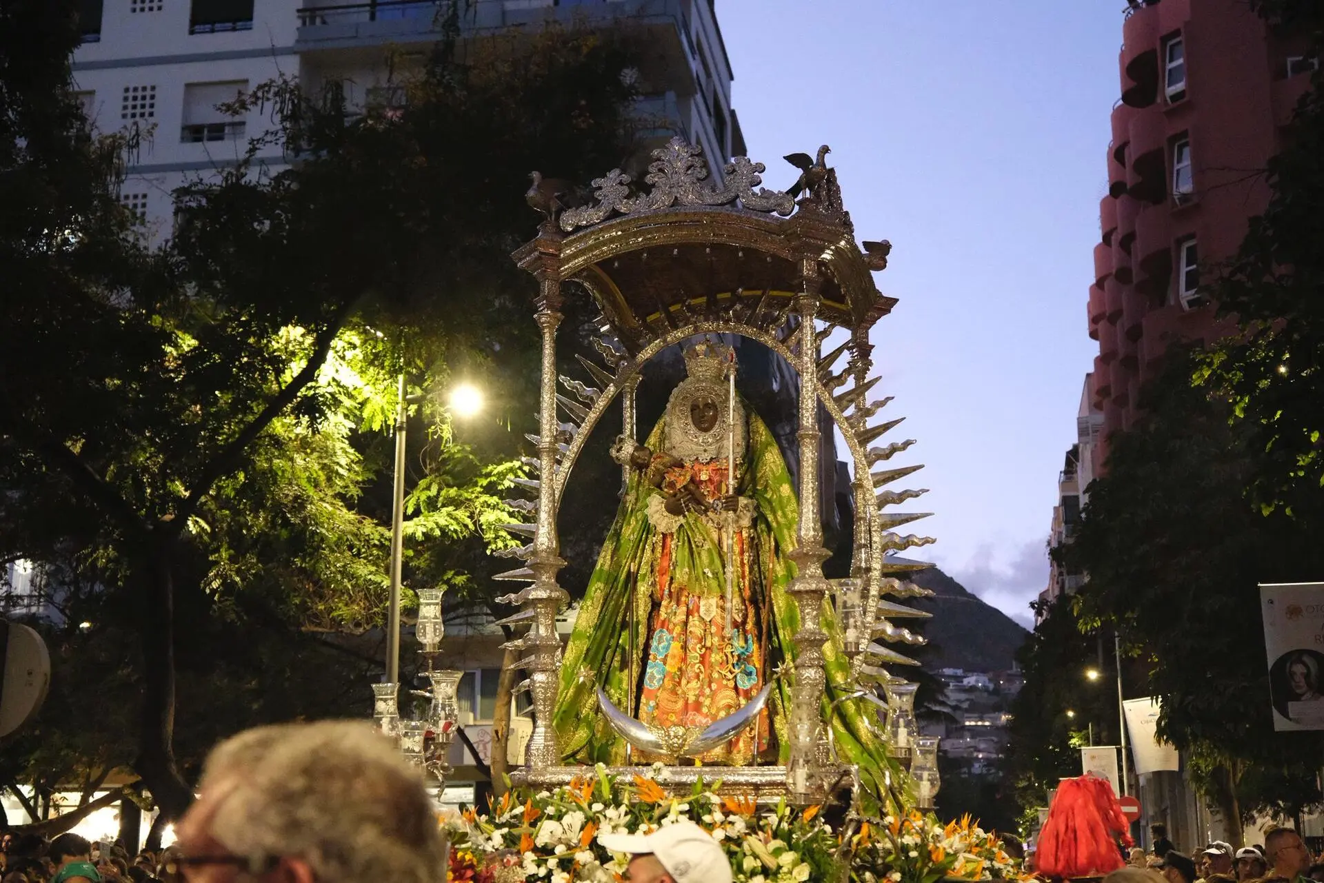 Am späten Abend traf die Jungfrau auf der Plaza de la Candelaria ein, wo die offizielle Zeremonie vor Tausenden von Gläubigen stattfand, nachdem eine Prozession durch die Straßen von Santa Cruz stattgefunden hatte, an der auch der Vizepräsident des Cabildo, Lope Afonso, und die Inselräte teilnahmen. Die Präsidentin der Insel, Rosa Dávila, sprach einige Worte des Dankes und hob „die tiefe Verehrung und den Geist der Einheit hervor, den die Jungfrau von Candelaria als Symbol der Hoffnung, des Schutzes und des gemeinsamen Glaubens in der Bevölkerung von Teneriffa weckt“.